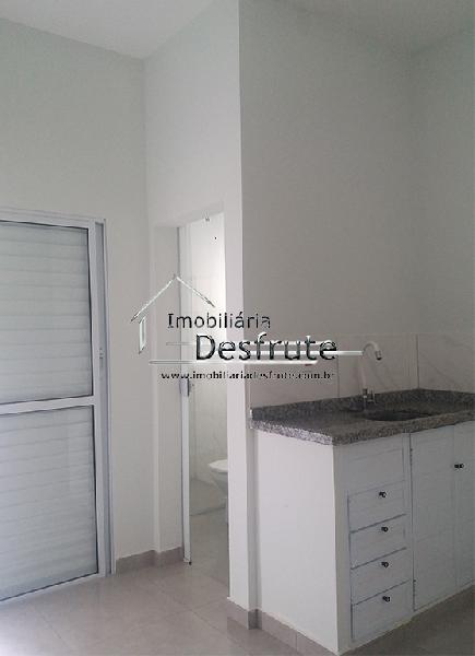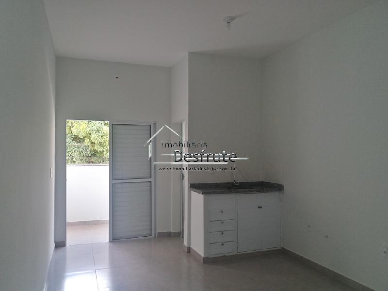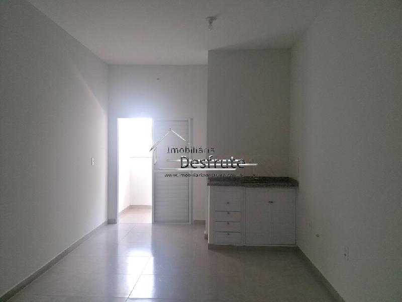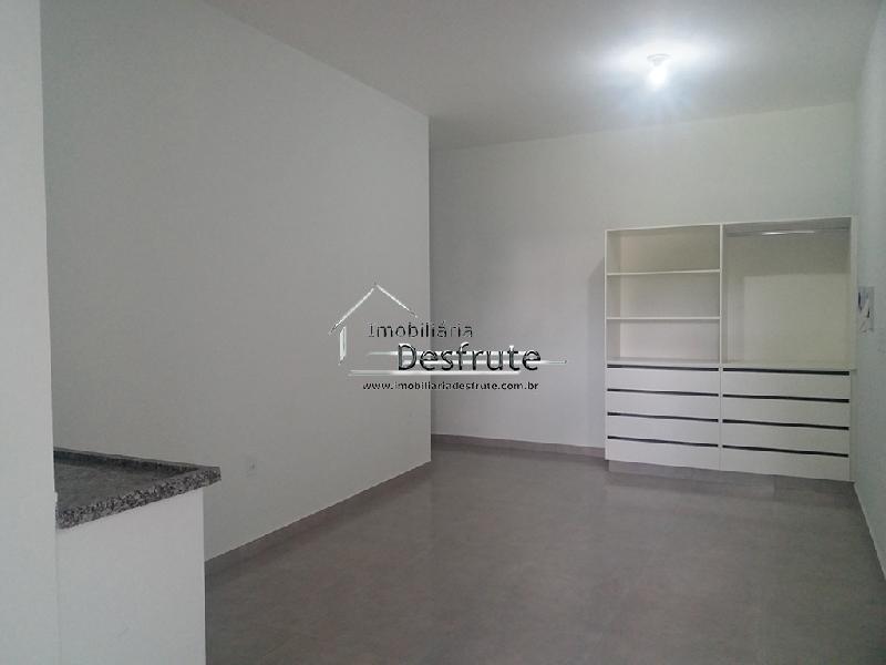 Kit net compacta, sendo no mesmo ambiente: quarto, sala e cozinha com armário embutido, banheiro, área de serviço, sem garagem.VALOR R$ 850,00 com IPTU, GÁS E ÁGUA inclusos.