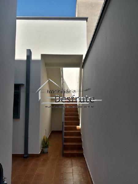 Casa sobradada: piso térreo, com: hall de entrada, sala, sala de tv, copa, cozinha, banheiro social, garagem 03 vagas; piso superior: 03 dormitórios, sendo 01 suíte, todos com armários, mais 01 banheiro social, mais uma sacada ampla; fundos: edícula, piso térreo, com: área de serviço, banheiro, 01dormitório; piso superior: área de churrasqueira, com churrasqueira coberta.